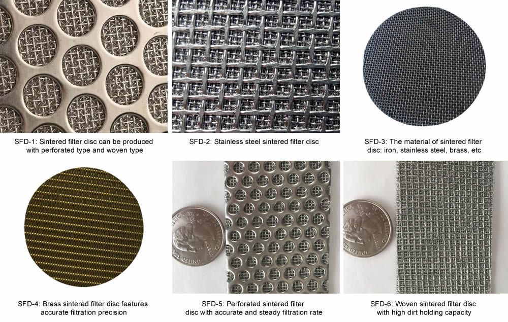 Sintered filter disc, also known as sintered wire mesh filter disc, is a new filter disc product. Sintered filter disc is the combination of multi-layer filter disc. Such as woven filter disc and perforated filter disc. Generally, it has five layers and the its structure includes protecting layer, filtration control layer, scattered skeleton layer, skeleton supporting layer. According to its material, it can be classified into stainless steel sintered filter disc, galvanized sintered filter disc, copper sintered filter disc and bronze sintered filter disc. Among these specific products, stainless steel sintered filter disc is the most popular. Stainless steel sintered filter disc, is made of stainless steel mesh cut by laser cutting machine with high precision in high vacuum furnace.